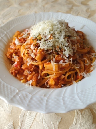 途中で一度パスタをほぐすのと、表示時間より1分多く蒸らすのがポイントです。