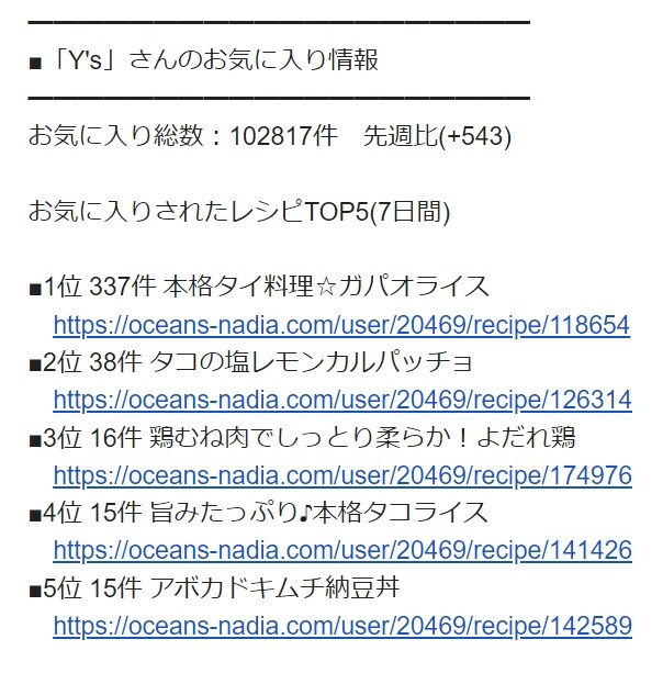 お気に入り総数:102817件 先週比(+543)