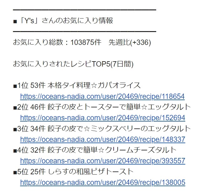 お気に入り総数:103875件 先週比(+336)