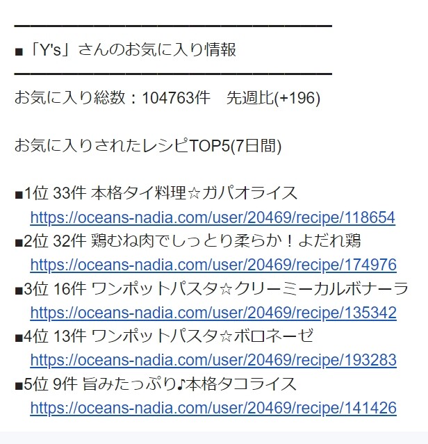 お気に入り総数:104763件 先週比(+196)