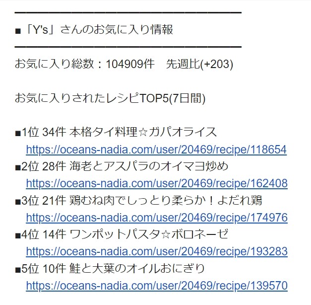 お気に入り総数:104909件 先週比(+203)