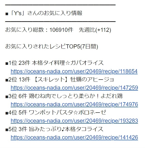 お気に入り総数:106910件 先週比(+112)
